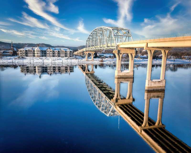 Luftaufnahme der Kirche aus braunem und grauem Beton