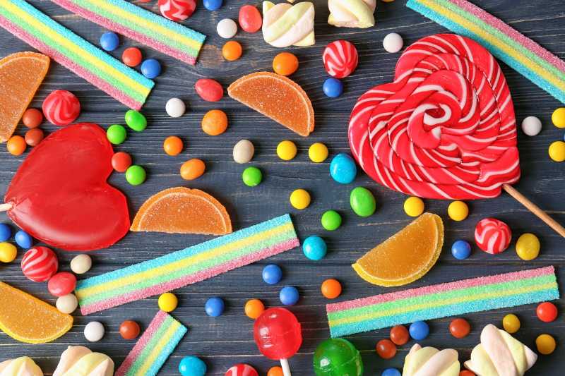 Dolci caramelle e edifici di cioccolato in un mondo da favola