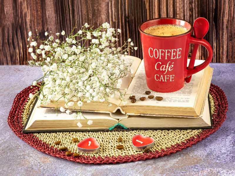Cozy Morning Coffee and Book Aesthetic Relaxing Still Life with Flowers