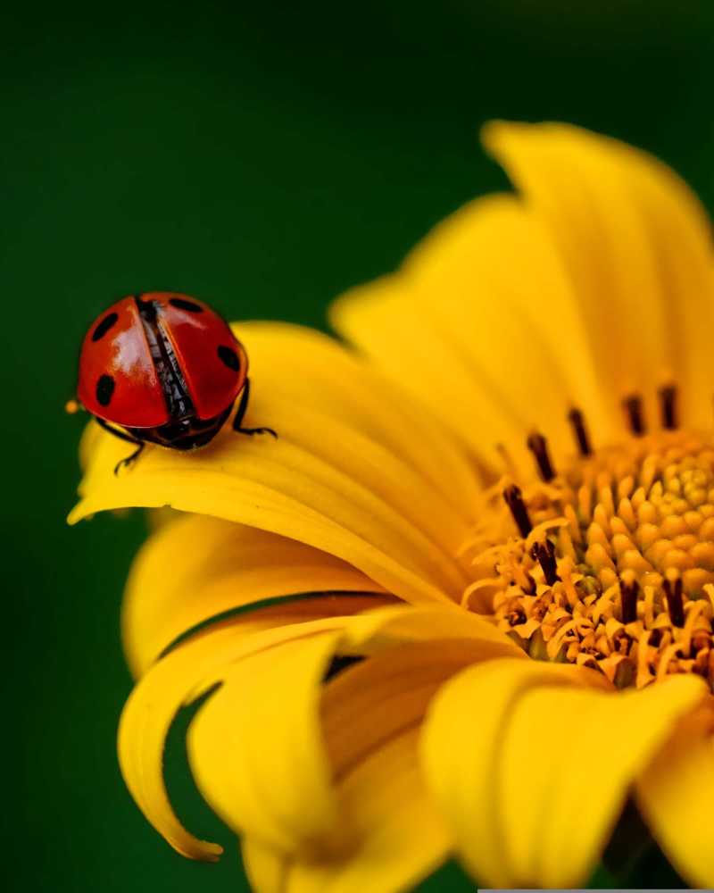 Macro Close-up of a Red Ladybug on a Yellow Flower Petal